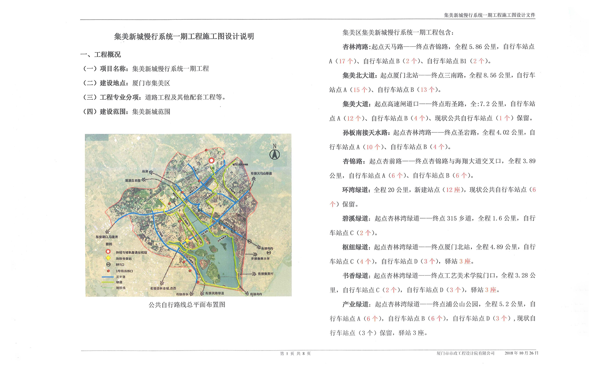 本项目位于厦门市集美区,总长约为64.5km,市政道路慢行道以现状道路为主局部进行修复和贯
