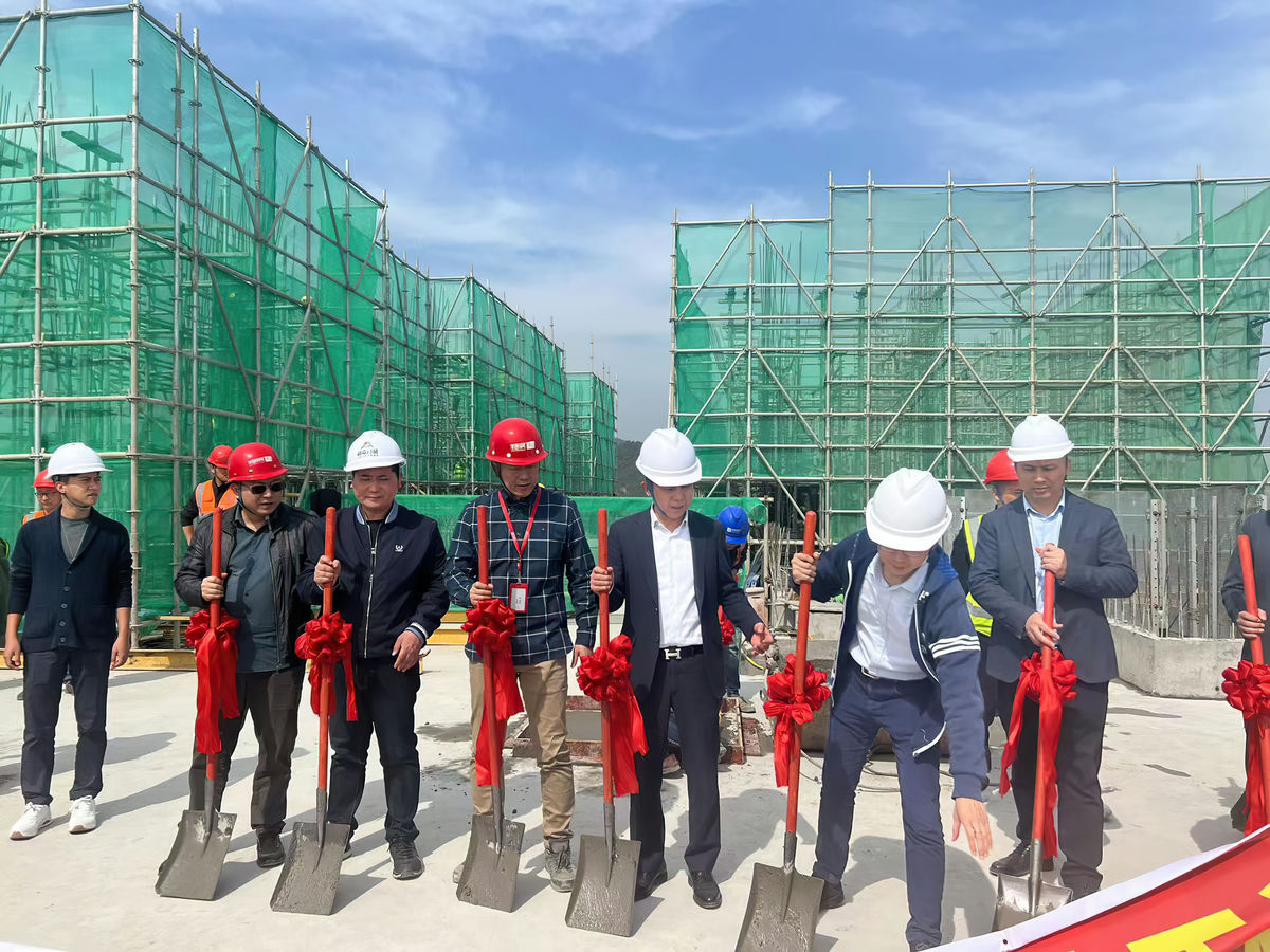 2023年3月14日上午10点,伴随鞭炮、礼花声中美峰花园安置房项目迎来了封顶仪式,在最后一方混凝土的浇筑到位后,润禹建设董事长罗会波、叶军龙、副总经理曾景飞携同业主、监理及项目部领导一起挥动铁锨,将美峰花园安置房项目顶层最后一块混凝土结构楼板顺利浇筑完成!