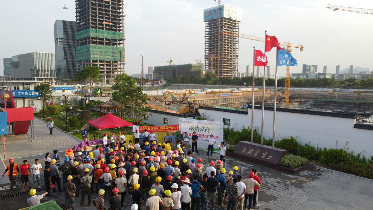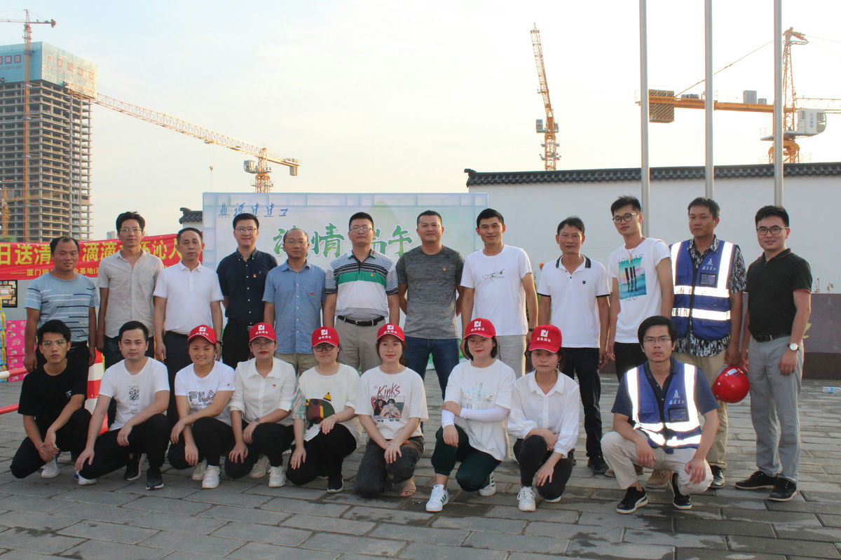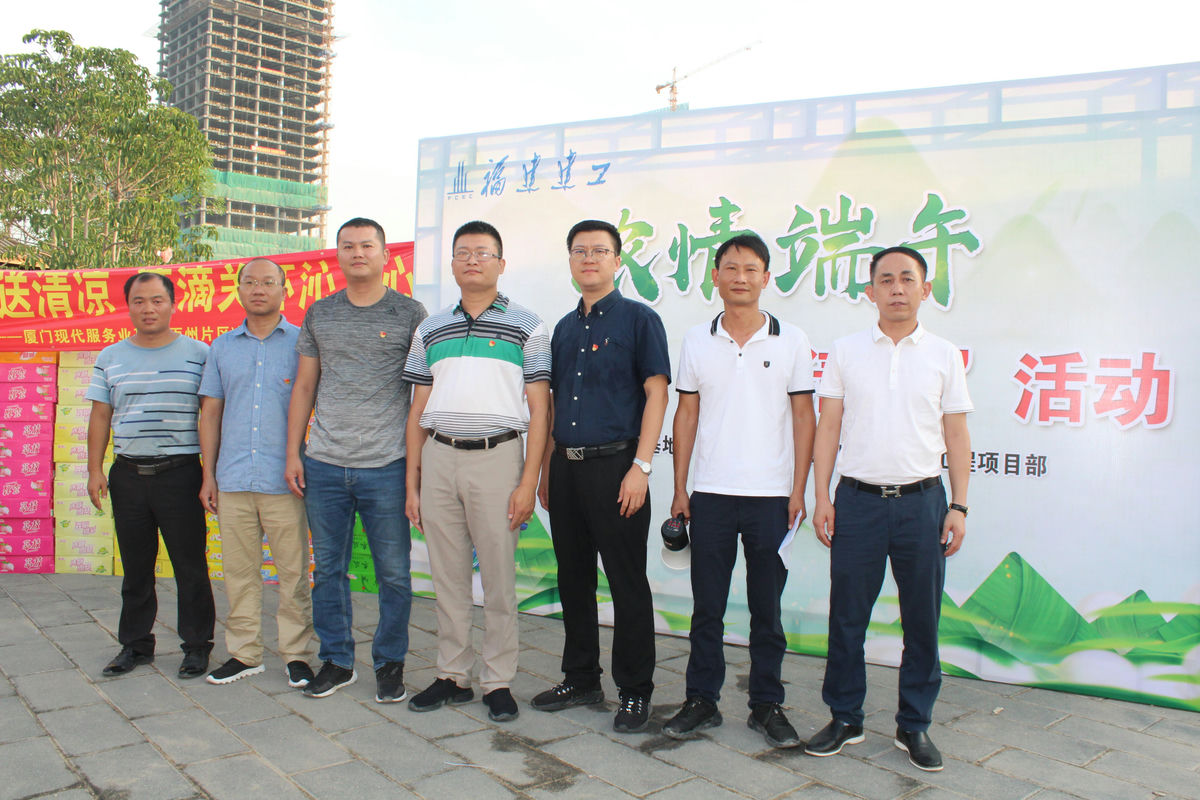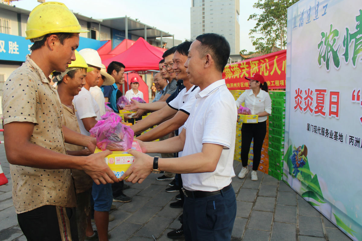 骄阳似火,酷暑难耐。为切实做好职工防暑降温工作,关爱一线职工的安全,在6月24日端午佳节来临前,我司董事长罗会波,副总经理曾景飞及建工总工沈延弘、陈进贤、练其盛、特房海湾王子文一行赴厦门现代服务业基地(丙洲片区)统建区I-3地块项目部开展2020年“炎炎夏日送清凉,滴滴关怀暖人心”慰问活动。